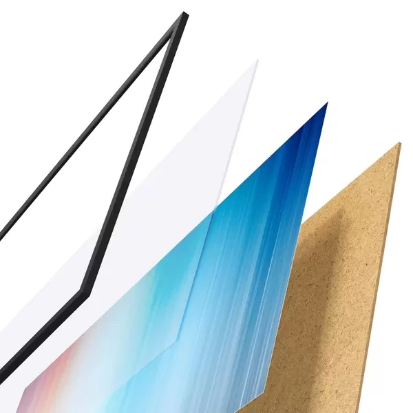Plakāts sastāv no rāmja, pleksstikla, iespiestā attēla un skaidu plātnes pamatnes. Plakātu var uzreiz piekarināt pie sienas, pateicoties aizmugurē esošajiem stiprinājumiem.