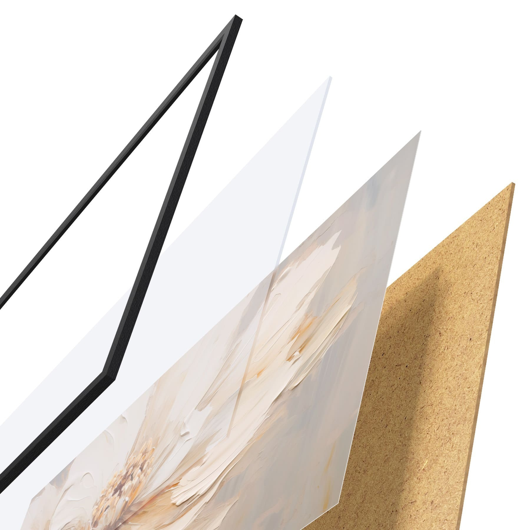 Plakāts sastāv no rāmja, pleksstikla, iespiestā attēla un skaidu plātnes pamatnes. Plakātu var uzreiz piekarināt pie sienas, pateicoties aizmugurē esošajiem stiprinājumiem.