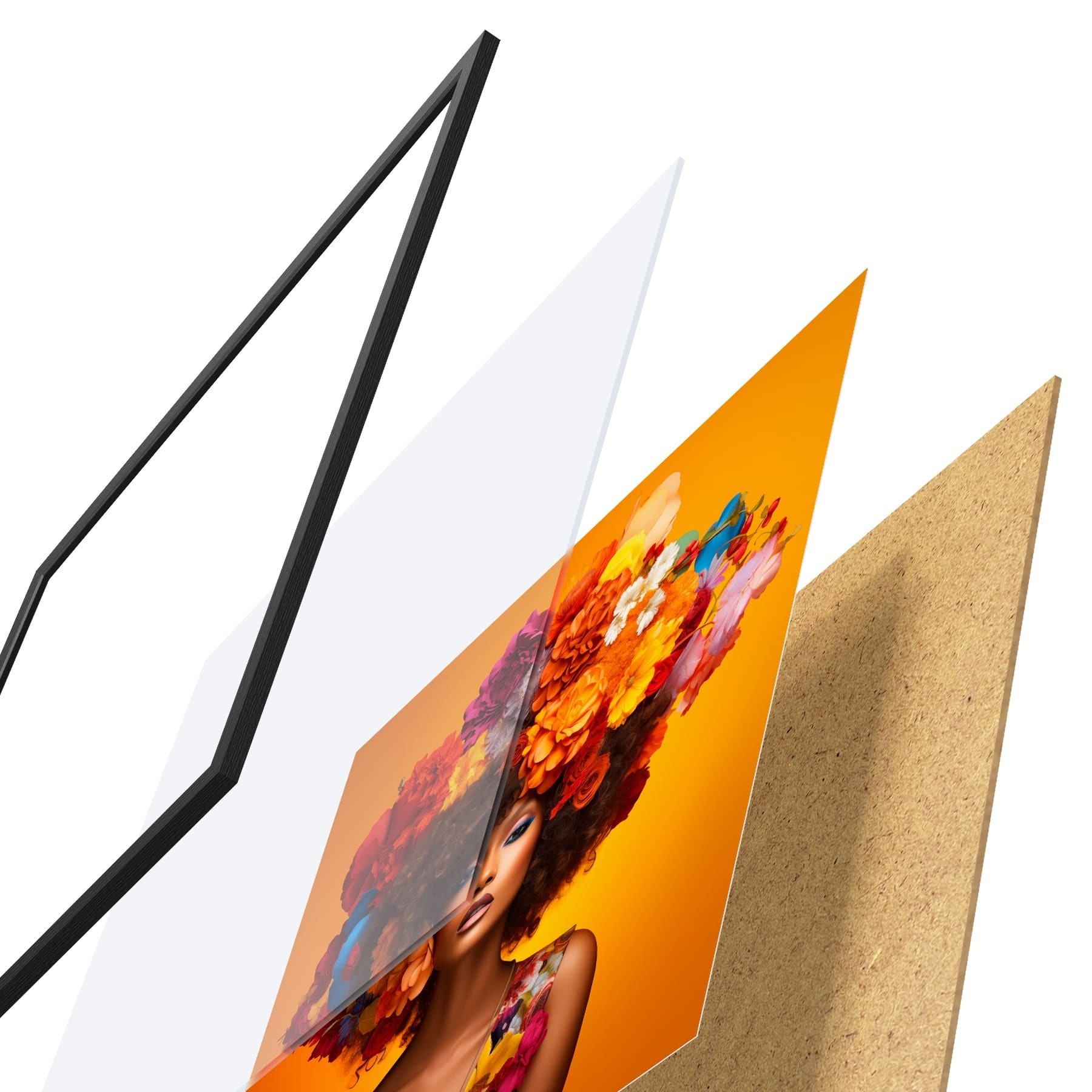 Plakāts sastāv no rāmja, pleksstikla, iespiestā attēla un skaidu plātnes pamatnes. Plakātu var uzreiz piekarināt pie sienas, pateicoties aizmugurē esošajiem stiprinājumiem.