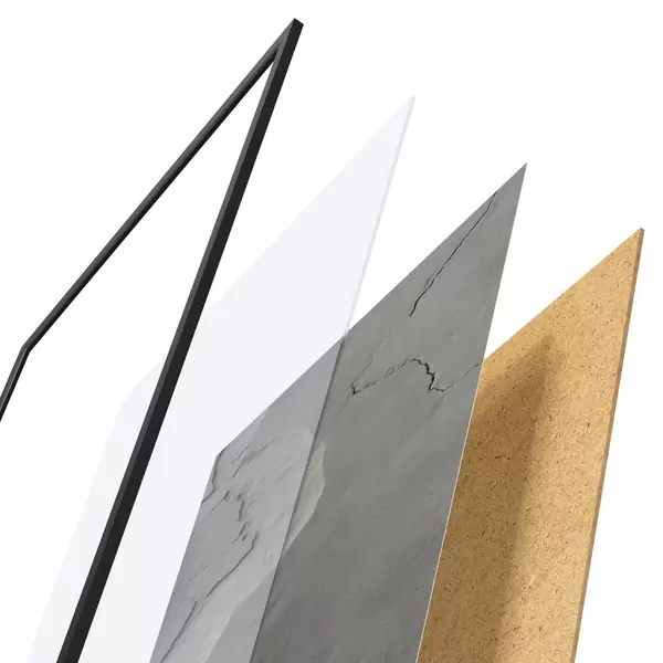 Plakāts sastāv no rāmja, pleksstikla, iespiestā attēla un skaidu plātnes pamatnes. Plakātu var uzreiz piekarināt pie sienas, pateicoties aizmugurē esošajiem stiprinājumiem.