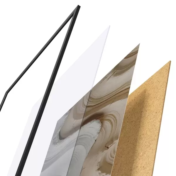 Plakāts sastāv no rāmja, pleksstikla, iespiestā attēla un skaidu plātnes pamatnes. Plakātu var uzreiz piekarināt pie sienas, pateicoties aizmugurē esošajiem stiprinājumiem.
