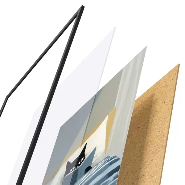 Plakāts sastāv no rāmja, pleksstikla, iespiestā attēla un skaidu plātnes pamatnes. Plakātu var uzreiz piekarināt pie sienas, pateicoties aizmugurē esošajiem stiprinājumiem.