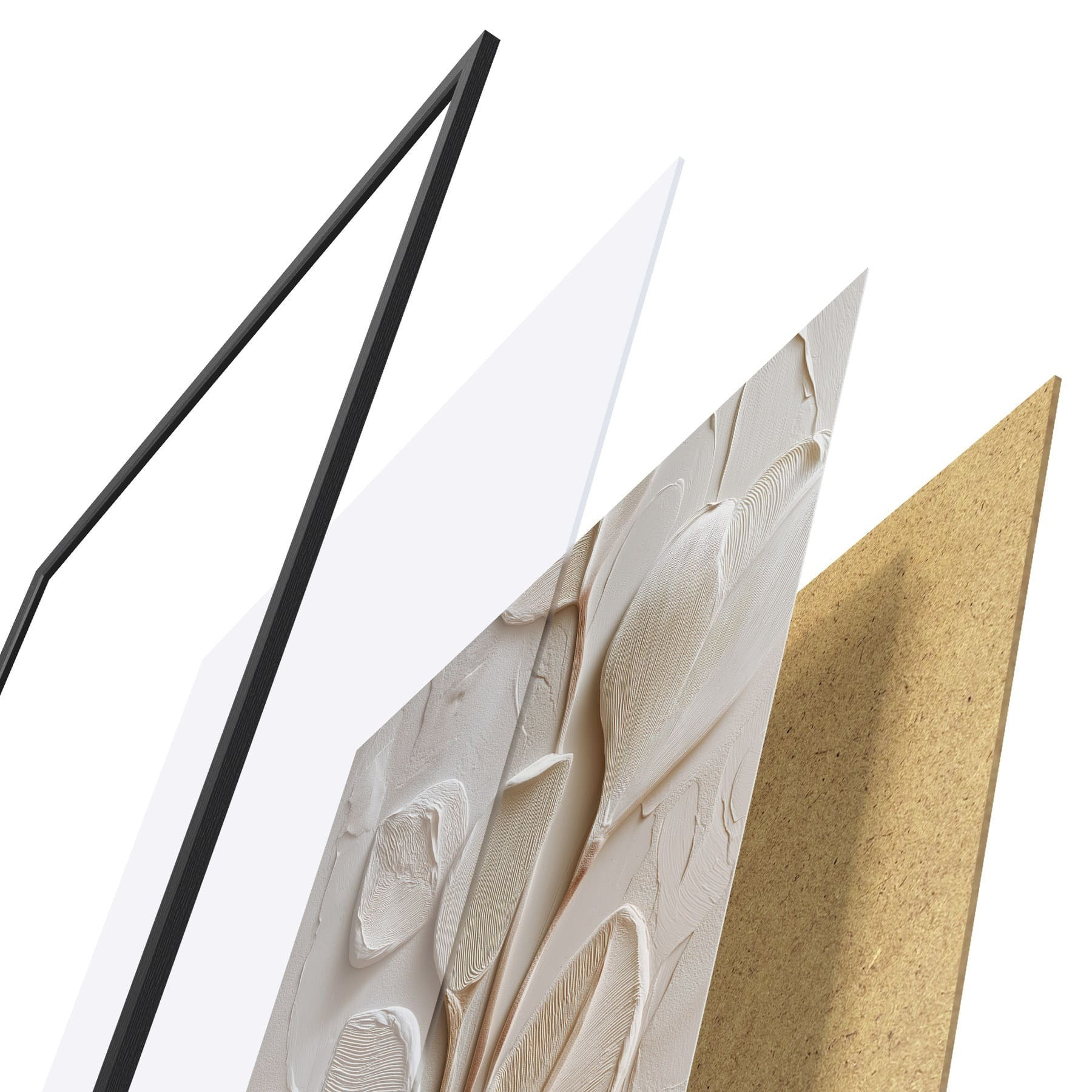 Plakāts sastāv no rāmja, pleksstikla, iespiestā attēla un skaidu plātnes pamatnes. Plakātu var uzreiz piekarināt pie sienas, pateicoties aizmugurē esošajiem stiprinājumiem.