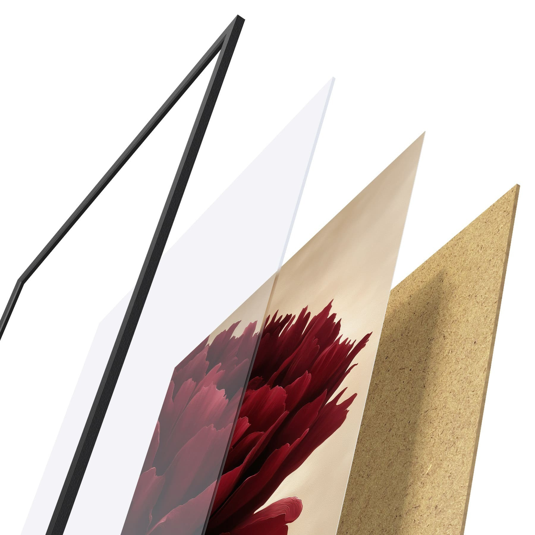 Plakāts sastāv no rāmja, pleksstikla, iespiestā attēla un skaidu plātnes pamatnes. Plakātu var uzreiz piekarināt pie sienas, pateicoties aizmugurē esošajiem stiprinājumiem.