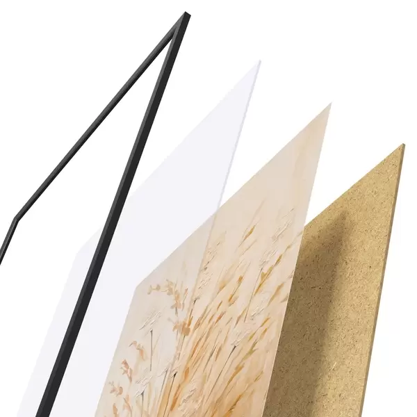 Plakāts sastāv no rāmja, pleksstikla, iespiestā attēla un skaidu plātnes pamatnes. Plakātu var uzreiz piekarināt pie sienas, pateicoties aizmugurē esošajiem stiprinājumiem.