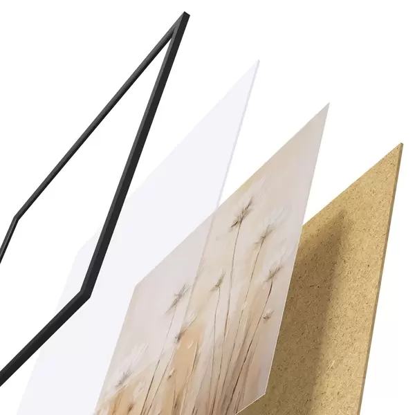 Plakāts sastāv no rāmja, pleksstikla, iespiestā attēla un skaidu plātnes pamatnes. Plakātu var uzreiz piekarināt pie sienas, pateicoties aizmugurē esošajiem stiprinājumiem.