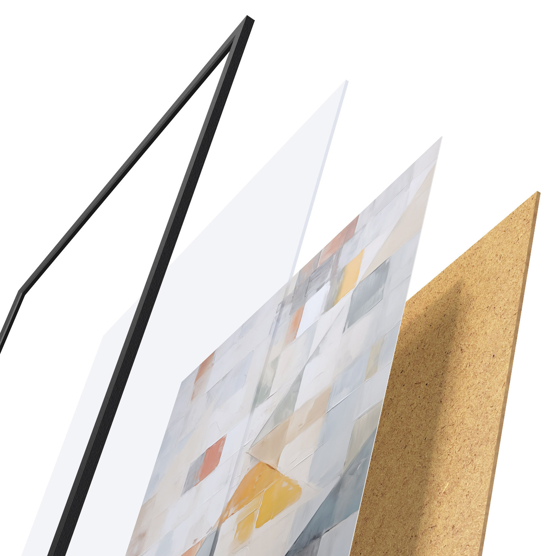 Plakāts sastāv no rāmja, pleksstikla, iespiestā attēla un skaidu plātnes pamatnes. Plakātu var uzreiz piekarināt pie sienas, pateicoties aizmugurē esošajiem stiprinājumiem.