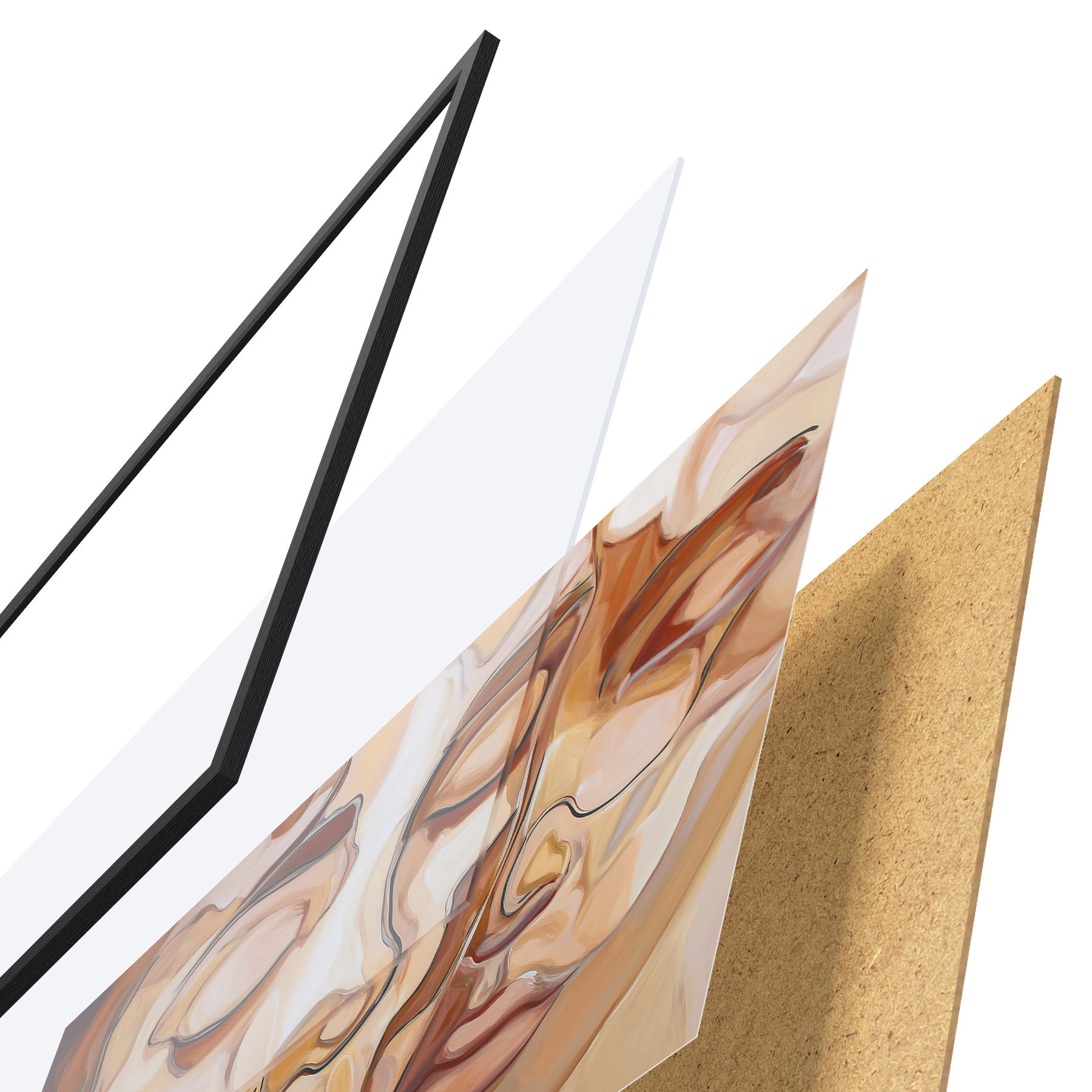 Plakāts sastāv no rāmja, pleksstikla, iespiestā attēla un skaidu plātnes pamatnes. Plakātu var uzreiz piekarināt pie sienas, pateicoties aizmugurē esošajiem stiprinājumiem.
