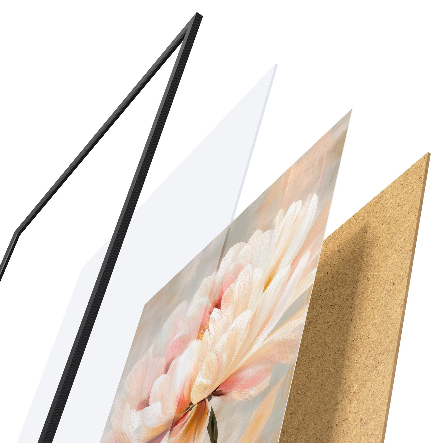 Plakāts sastāv no rāmja, pleksstikla, iespiestā attēla un skaidu plātnes pamatnes. Plakātu var uzreiz piekarināt pie sienas, pateicoties aizmugurē esošajiem stiprinājumiem.