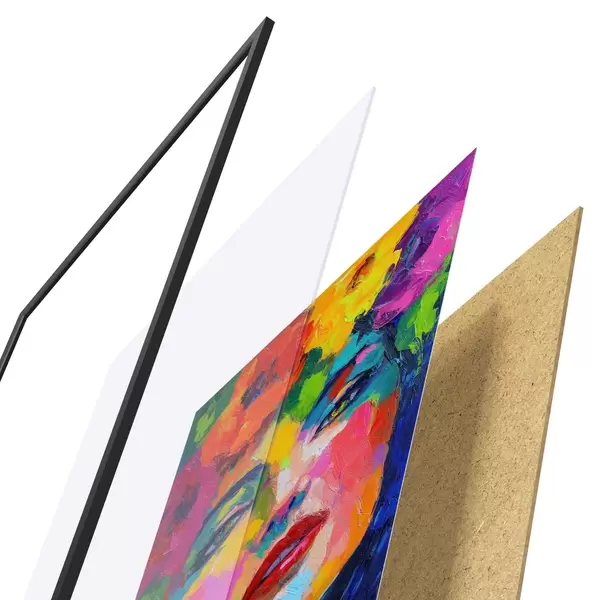 Plakāts sastāv no rāmja, pleksstikla, iespiestā attēla un skaidu plātnes pamatnes. Plakātu var uzreiz piekarināt pie sienas, pateicoties aizmugurē esošajiem stiprinājumiem.