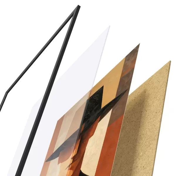 Plakāts sastāv no rāmja, pleksstikla, iespiestā attēla un skaidu plātnes pamatnes. Plakātu var uzreiz piekarināt pie sienas, pateicoties aizmugurē esošajiem stiprinājumiem.