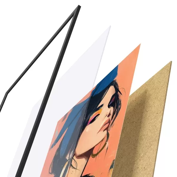 Plakāts sastāv no rāmja, pleksstikla, iespiestā attēla un skaidu plātnes pamatnes. Plakātu var uzreiz piekarināt pie sienas, pateicoties aizmugurē esošajiem stiprinājumiem.