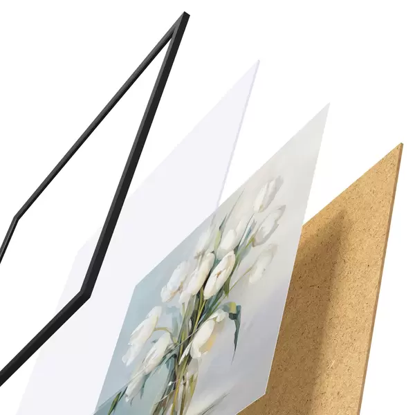 Plakāts sastāv no rāmja, pleksstikla, iespiestā attēla un skaidu plātnes pamatnes. Plakātu var uzreiz piekarināt pie sienas, pateicoties aizmugurē esošajiem stiprinājumiem.