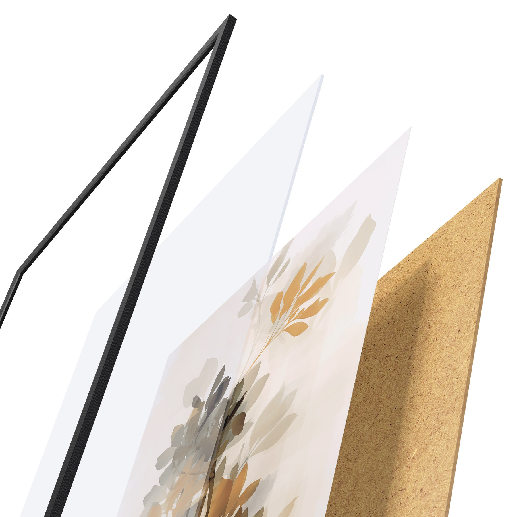 Plakāts sastāv no rāmja, pleksstikla, iespiestā attēla un skaidu plātnes pamatnes. Plakātu var uzreiz piekarināt pie sienas, pateicoties aizmugurē esošajiem stiprinājumiem.