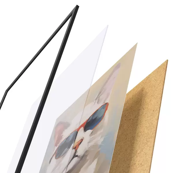 Plakāts sastāv no rāmja, pleksstikla, iespiestā attēla un skaidu plātnes pamatnes. Plakātu var uzreiz piekarināt pie sienas, pateicoties aizmugurē esošajiem stiprinājumiem.