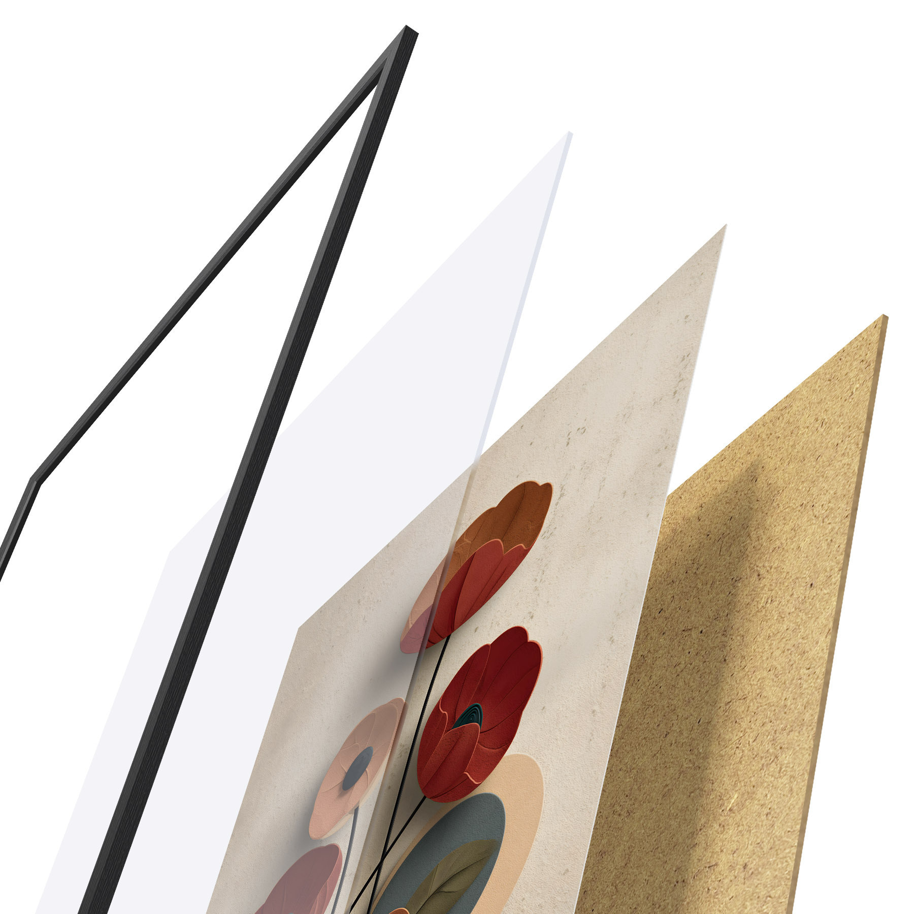 Plakāts sastāv no rāmja, pleksstikla, iespiestā attēla un skaidu plātnes pamatnes. Plakātu var uzreiz piekarināt pie sienas, pateicoties aizmugurē esošajiem stiprinājumiem.