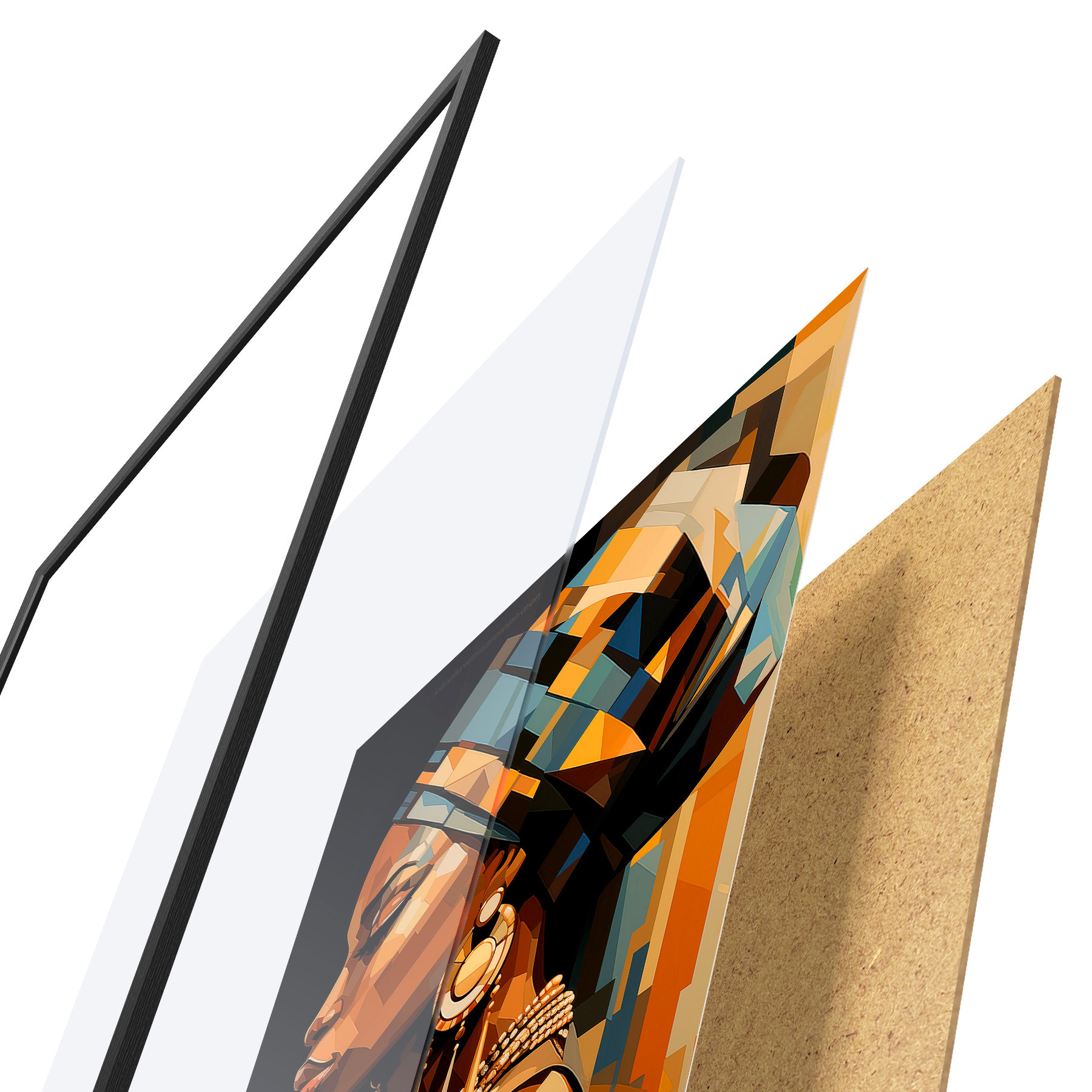 Plakāts sastāv no rāmja, pleksstikla, iespiestā attēla un skaidu plātnes pamatnes. Plakātu var uzreiz piekarināt pie sienas, pateicoties aizmugurē esošajiem stiprinājumiem.