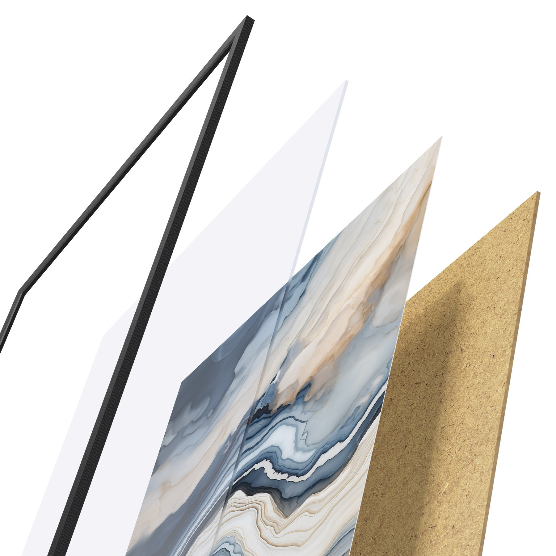 Plakāts sastāv no rāmja, pleksstikla, iespiestā attēla un skaidu plātnes pamatnes. Plakātu var uzreiz piekarināt pie sienas, pateicoties aizmugurē esošajiem stiprinājumiem.