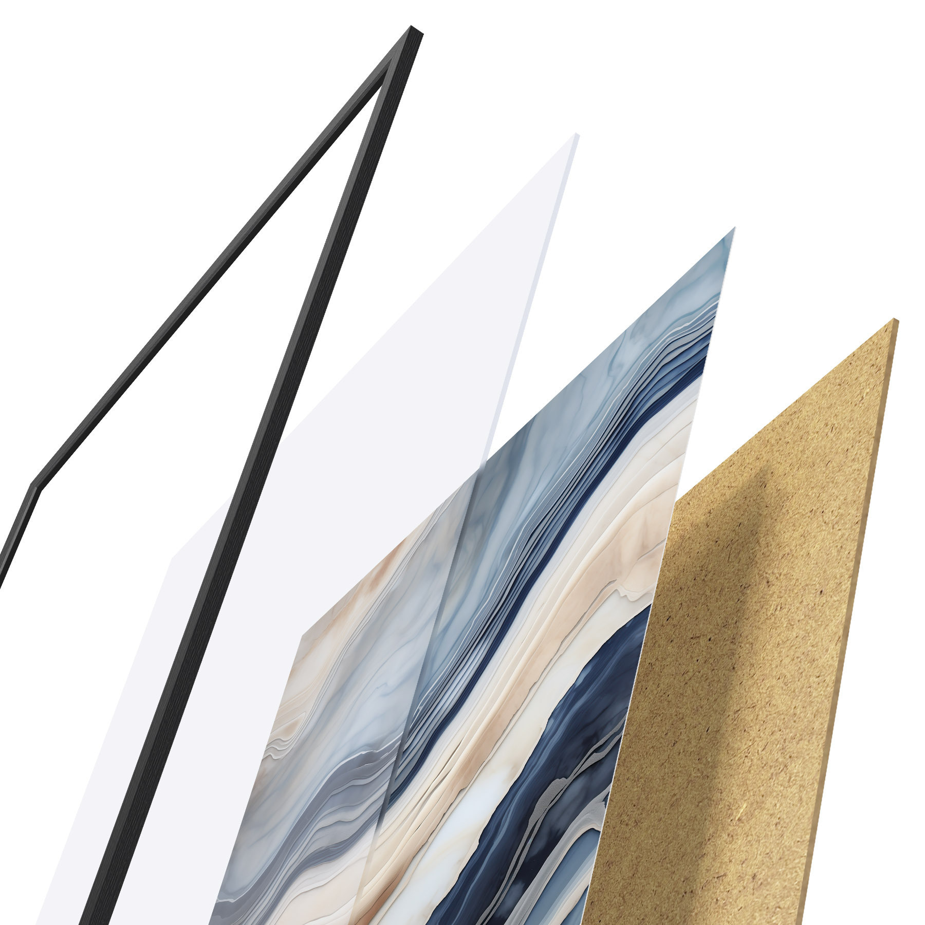Plakāts sastāv no rāmja, pleksstikla, iespiestā attēla un skaidu plātnes pamatnes. Plakātu var uzreiz piekarināt pie sienas, pateicoties aizmugurē esošajiem stiprinājumiem.