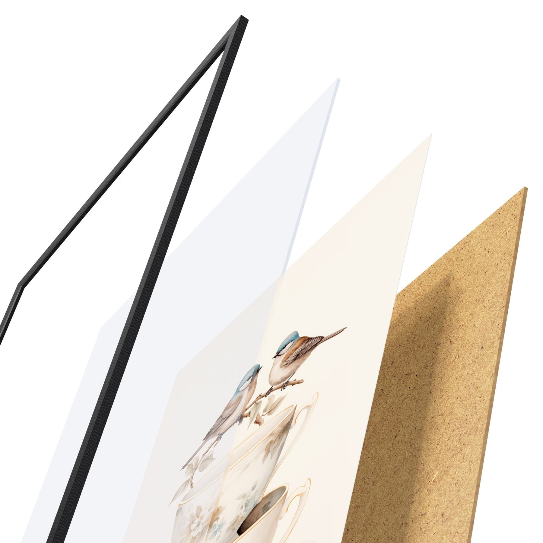 Plakāts sastāv no rāmja, pleksstikla, iespiestā attēla un skaidu plātnes pamatnes. Plakātu var uzreiz piekarināt pie sienas, pateicoties aizmugurē esošajiem stiprinājumiem.