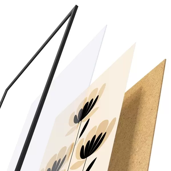 Plakāts sastāv no rāmja, pleksstikla, iespiestā attēla un skaidu plātnes pamatnes. Plakātu var uzreiz piekarināt pie sienas, pateicoties aizmugurē esošajiem stiprinājumiem.