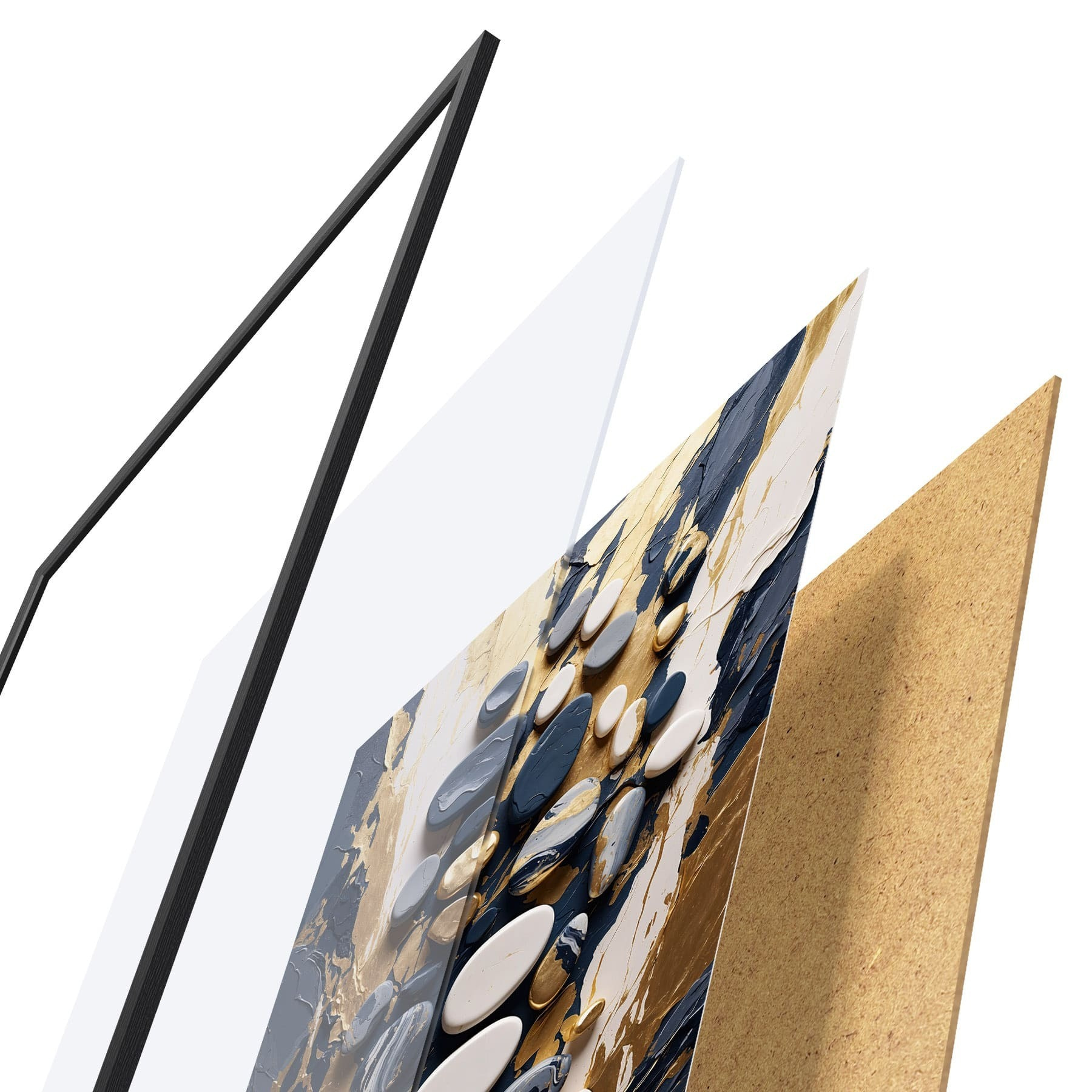 Plakāts sastāv no rāmja, pleksstikla, iespiestā attēla un skaidu plātnes pamatnes. Plakātu var uzreiz piekarināt pie sienas, pateicoties aizmugurē esošajiem stiprinājumiem.