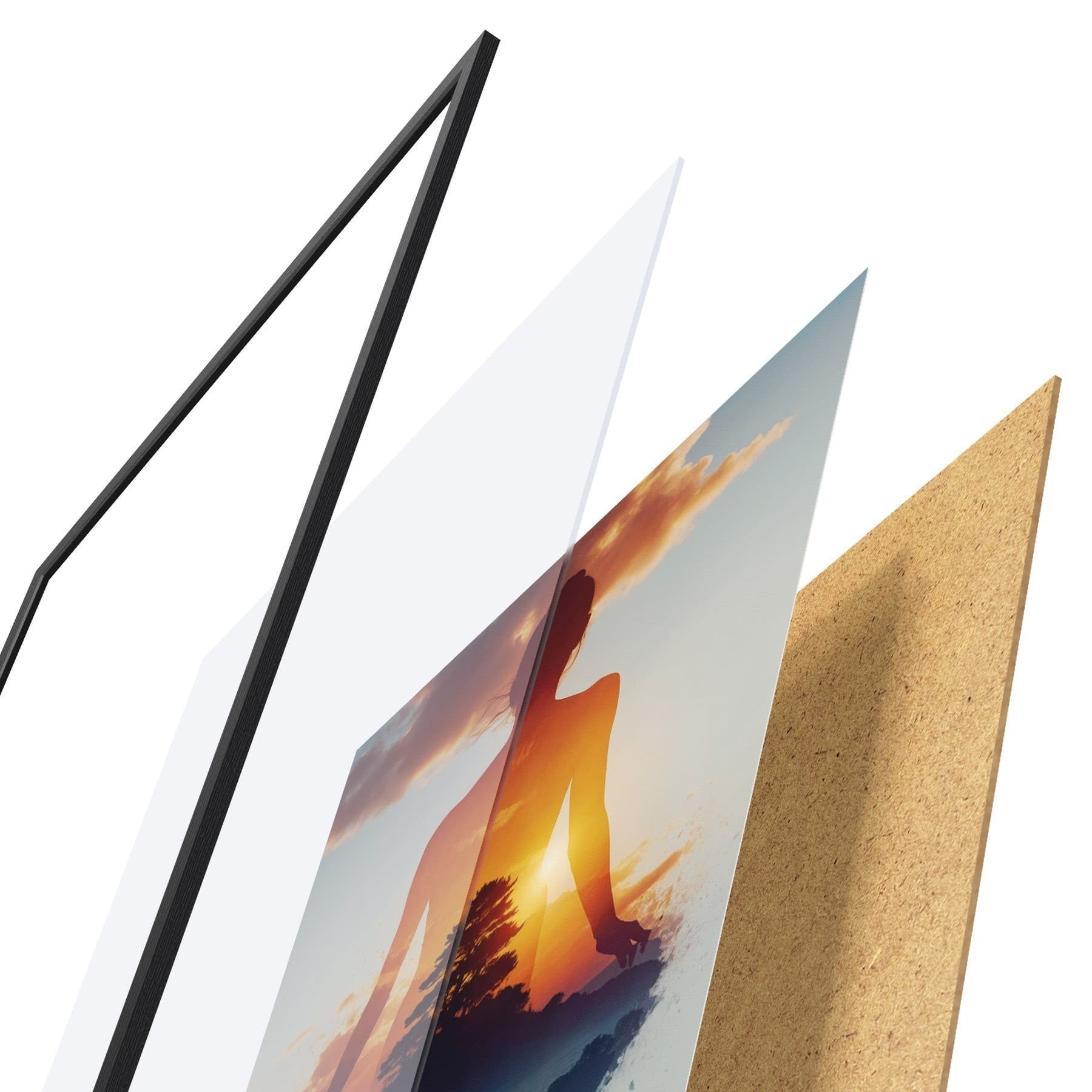 Plakāts sastāv no rāmja, pleksstikla, iespiestā attēla un skaidu plātnes pamatnes. Plakātu var uzreiz piekarināt pie sienas, pateicoties aizmugurē esošajiem stiprinājumiem.