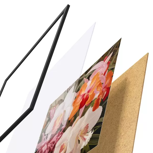 Plakāts sastāv no rāmja, pleksstikla, iespiestā attēla un skaidu plātnes pamatnes. Plakātu var uzreiz piekarināt pie sienas, pateicoties aizmugurē esošajiem stiprinājumiem.