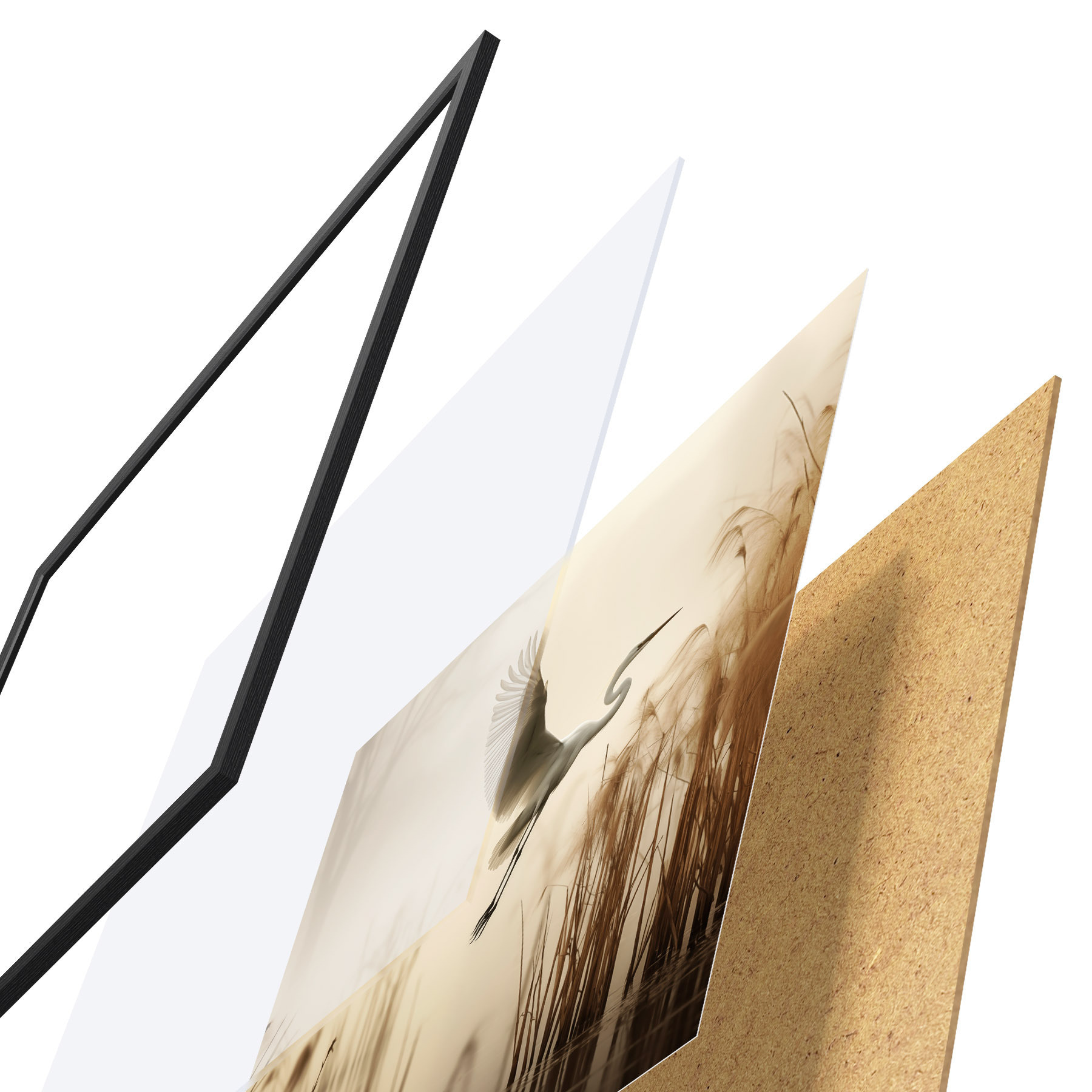 Plakāts sastāv no rāmja, pleksstikla, iespiestā attēla un skaidu plātnes pamatnes. Plakātu var uzreiz piekarināt pie sienas, pateicoties aizmugurē esošajiem stiprinājumiem.