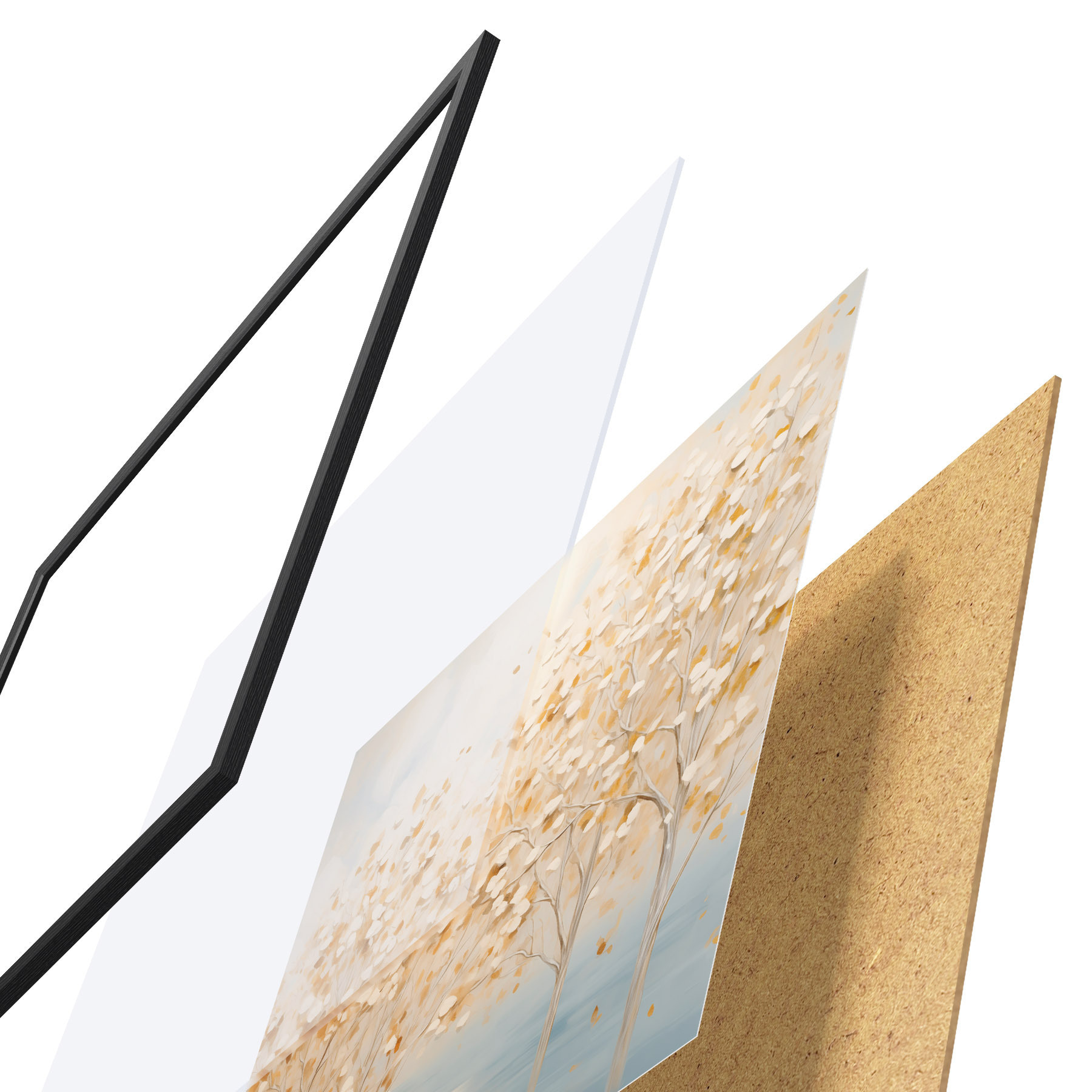 Plakāts sastāv no rāmja, pleksstikla, iespiestā attēla un skaidu plātnes pamatnes. Plakātu var uzreiz piekarināt pie sienas, pateicoties aizmugurē esošajiem stiprinājumiem.