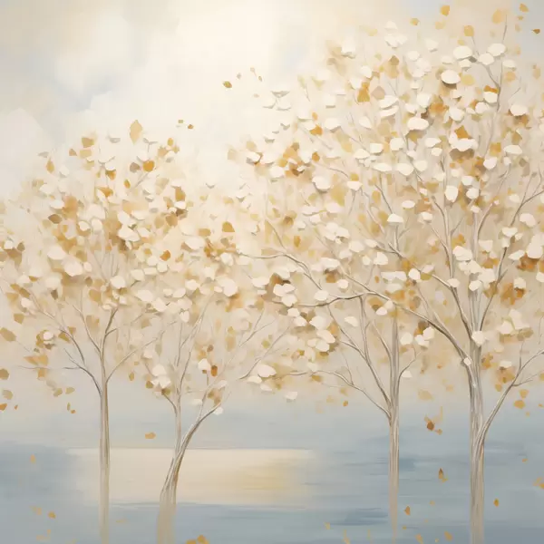 SākumlapaPlakātu katalogsPlakāti dabaPlakāts Teksturēts glezniecības stils, kurā attēloti koki ar baltām un dzeltenām lapām uz gaiši zila fona Nr f48392