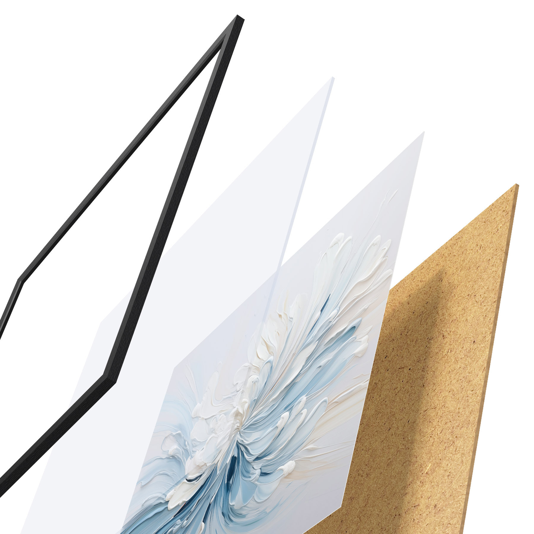 Plakāts sastāv no rāmja, pleksstikla, iespiestā attēla un skaidu plātnes pamatnes. Plakātu var uzreiz piekarināt pie sienas, pateicoties aizmugurē esošajiem stiprinājumiem.