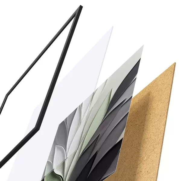Plakāts sastāv no rāmja, pleksstikla, iespiestā attēla un skaidu plātnes pamatnes. Plakātu var uzreiz piekarināt pie sienas, pateicoties aizmugurē esošajiem stiprinājumiem.