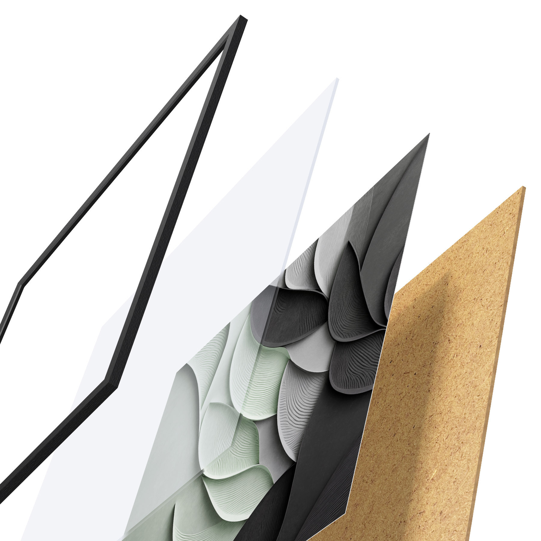 Plakāts sastāv no rāmja, pleksstikla, iespiestā attēla un skaidu plātnes pamatnes. Plakātu var uzreiz piekarināt pie sienas, pateicoties aizmugurē esošajiem stiprinājumiem.