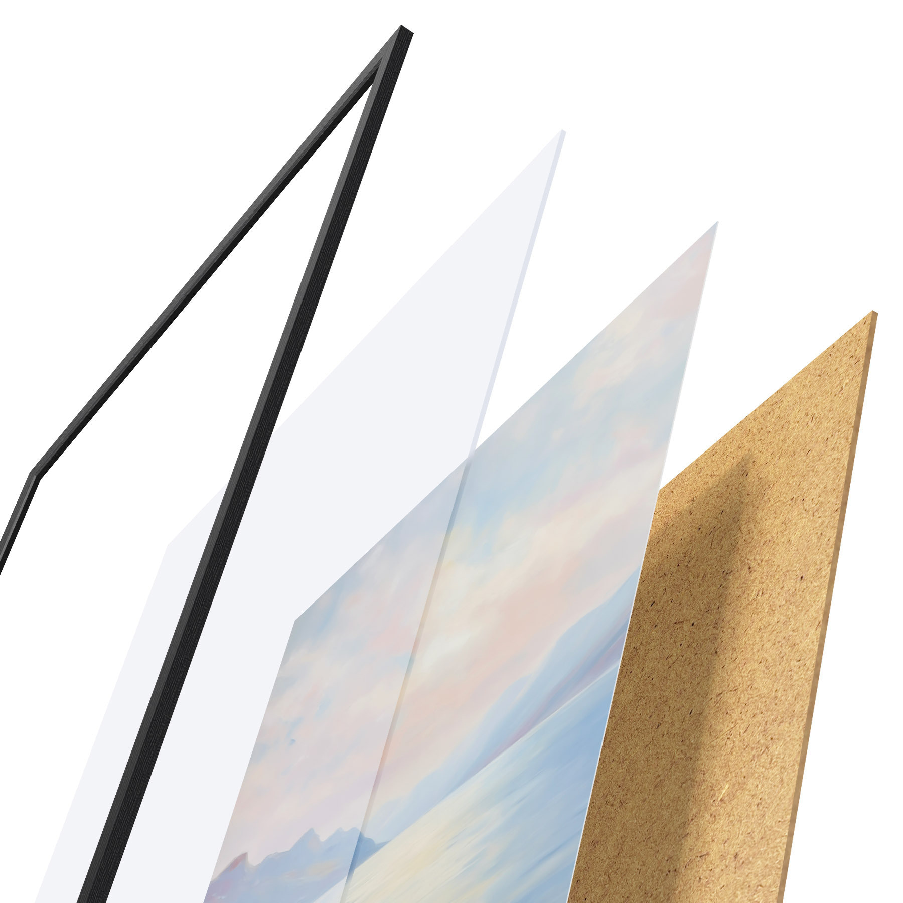 Plakāts sastāv no rāmja, pleksstikla, iespiestā attēla un skaidu plātnes pamatnes. Plakātu var uzreiz piekarināt pie sienas, pateicoties aizmugurē esošajiem stiprinājumiem.