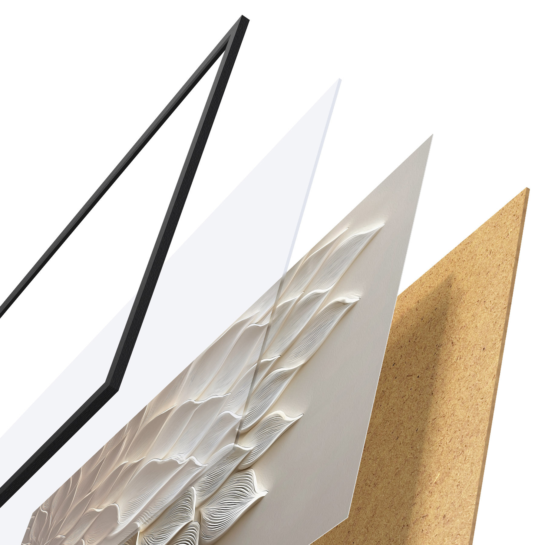 Plakāts sastāv no rāmja, pleksstikla, iespiestā attēla un skaidu plātnes pamatnes. Plakātu var uzreiz piekarināt pie sienas, pateicoties aizmugurē esošajiem stiprinājumiem.