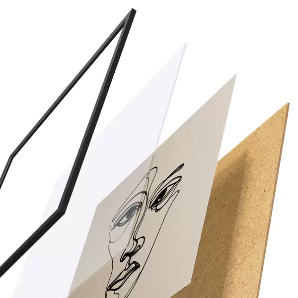 Plakāts sastāv no rāmja, pleksstikla, iespiestā attēla un skaidu plātnes pamatnes. Plakātu var uzreiz piekarināt pie sienas, pateicoties aizmugurē esošajiem stiprinājumiem.
