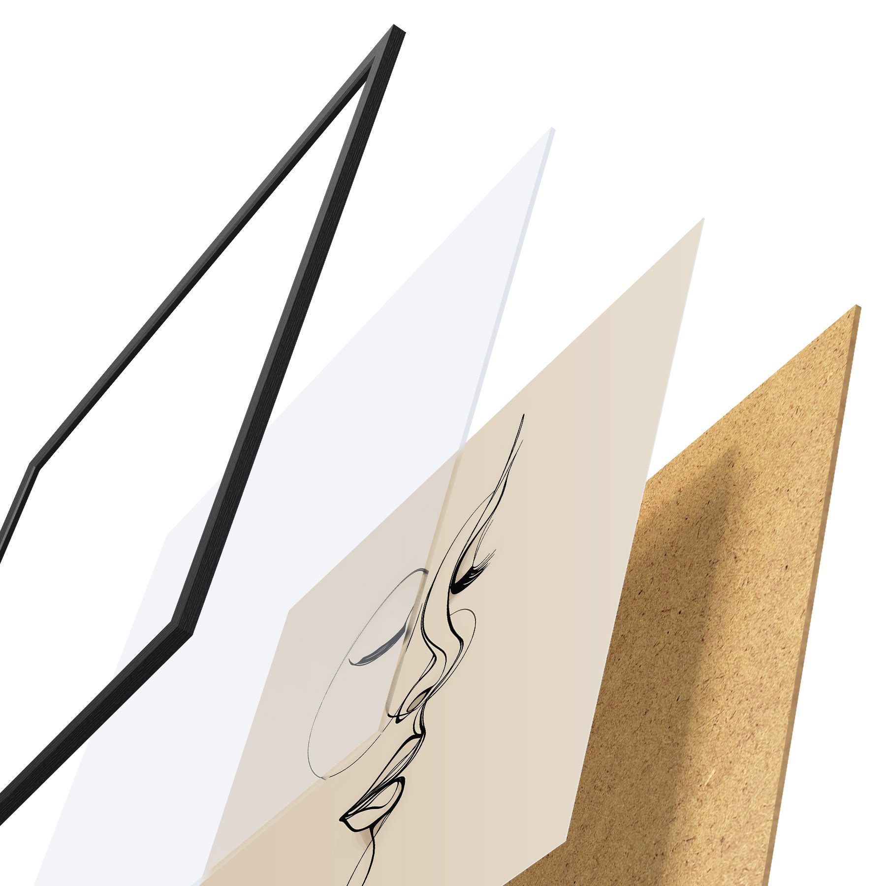 Plakāts sastāv no rāmja, pleksstikla, iespiestā attēla un skaidu plātnes pamatnes. Plakātu var uzreiz piekarināt pie sienas, pateicoties aizmugurē esošajiem stiprinājumiem.