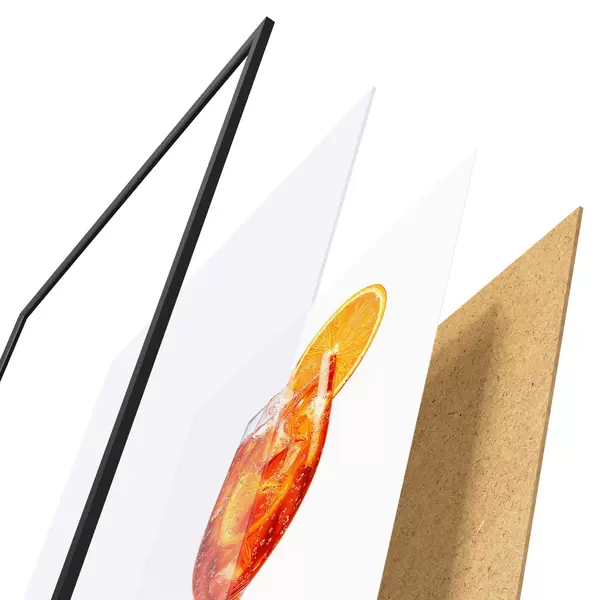 Plakāts sastāv no rāmja, pleksstikla, iespiestā attēla un skaidu plātnes pamatnes. Plakātu var uzreiz piekarināt pie sienas, pateicoties aizmugurē esošajiem stiprinājumiem.