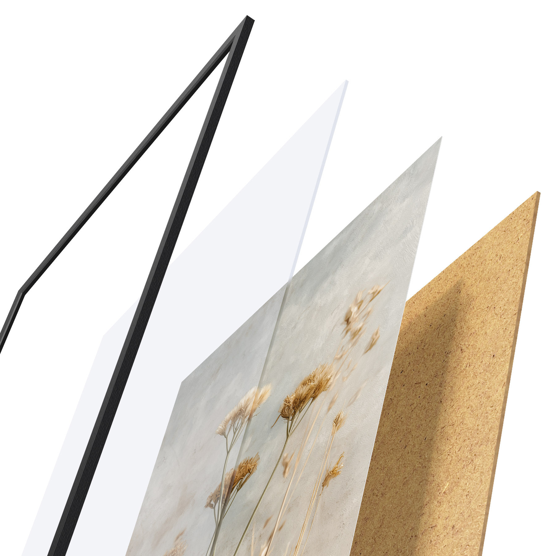 Plakāts sastāv no rāmja, pleksstikla, iespiestā attēla un skaidu plātnes pamatnes. Plakātu var uzreiz piekarināt pie sienas, pateicoties aizmugurē esošajiem stiprinājumiem.
