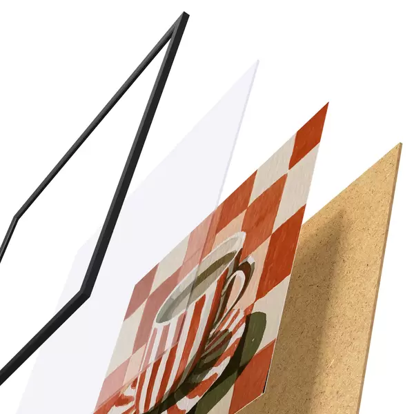 Plakāts sastāv no rāmja, pleksstikla, iespiestā attēla un skaidu plātnes pamatnes. Plakātu var uzreiz piekarināt pie sienas, pateicoties aizmugurē esošajiem stiprinājumiem.