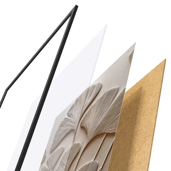 Plakāts sastāv no rāmja, pleksstikla, iespiestā attēla un skaidu plātnes pamatnes. Plakātu var uzreiz piekarināt pie sienas, pateicoties aizmugurē esošajiem stiprinājumiem.
