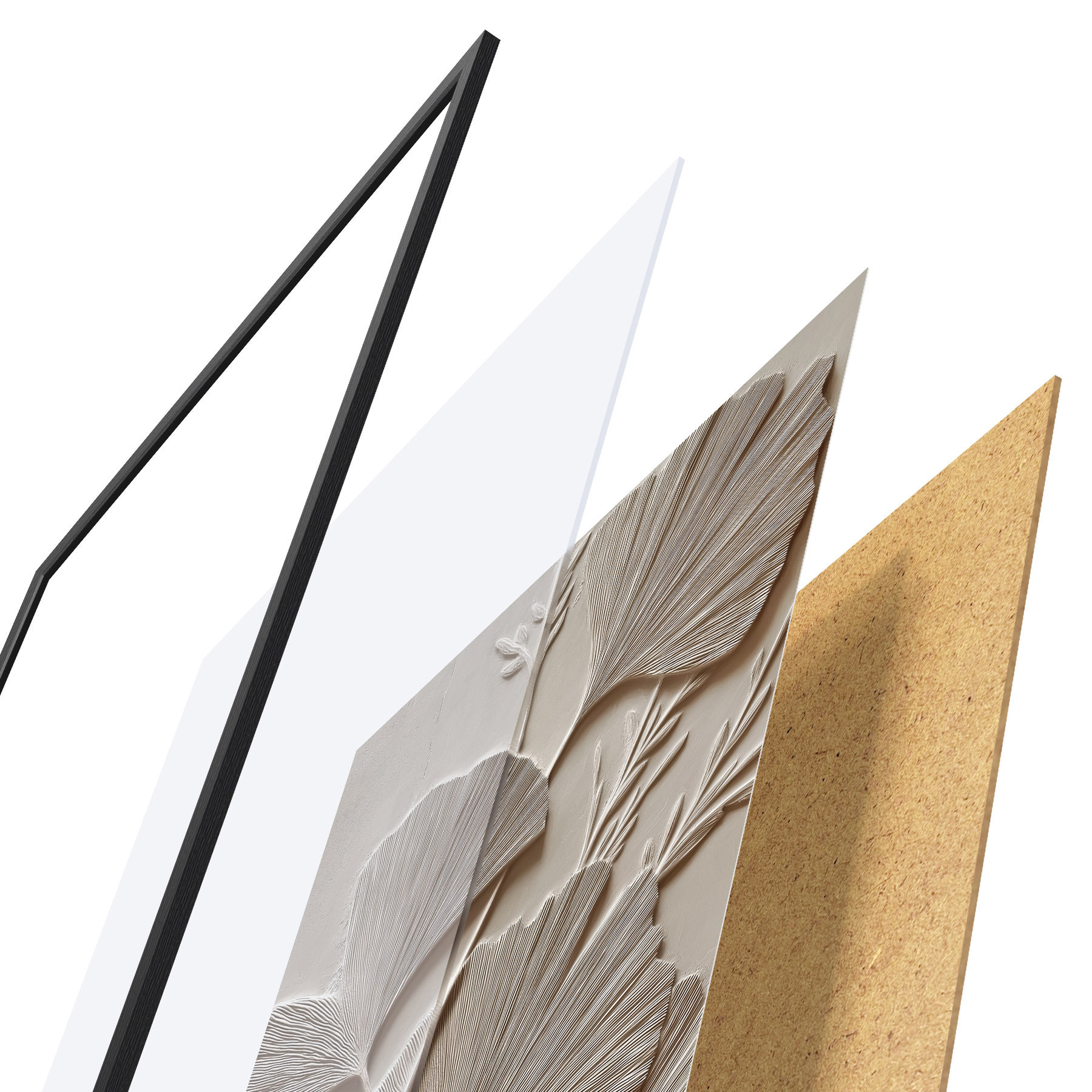 Plakāts sastāv no rāmja, pleksstikla, iespiestā attēla un skaidu plātnes pamatnes. Plakātu var uzreiz piekarināt pie sienas, pateicoties aizmugurē esošajiem stiprinājumiem.