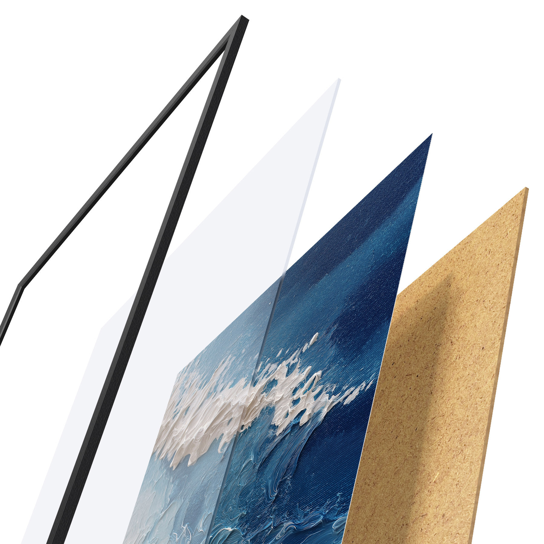 Plakāts sastāv no rāmja, pleksstikla, iespiestā attēla un skaidu plātnes pamatnes. Plakātu var uzreiz piekarināt pie sienas, pateicoties aizmugurē esošajiem stiprinājumiem.
