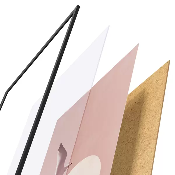 Plakāts sastāv no rāmja, pleksstikla, iespiestā attēla un skaidu plātnes pamatnes. Plakātu var uzreiz piekarināt pie sienas, pateicoties aizmugurē esošajiem stiprinājumiem.