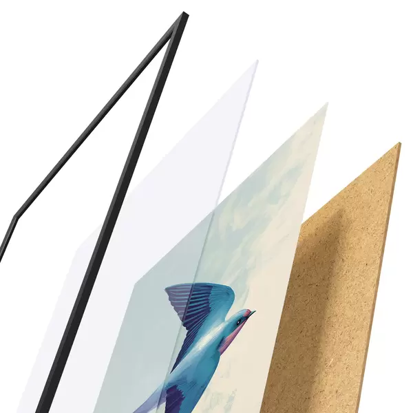 Plakāts sastāv no rāmja, pleksstikla, iespiestā attēla un skaidu plātnes pamatnes. Plakātu var uzreiz piekarināt pie sienas, pateicoties aizmugurē esošajiem stiprinājumiem.