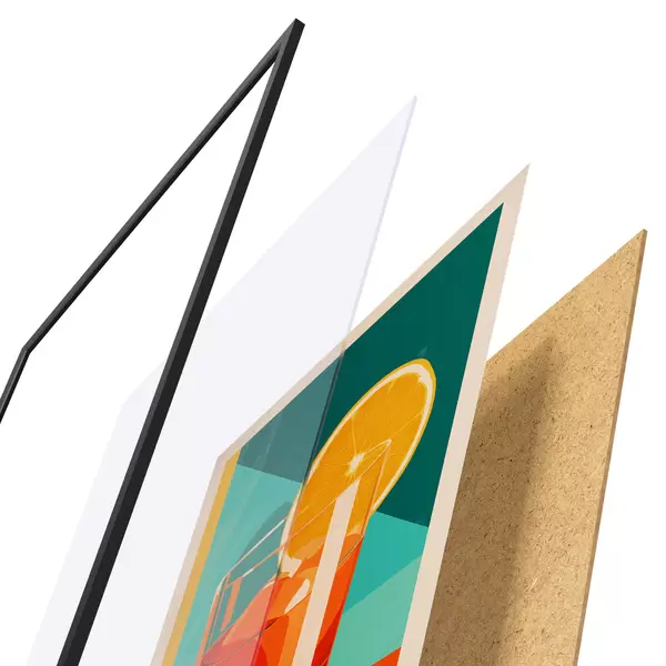 Plakāts sastāv no rāmja, pleksstikla, iespiestā attēla un skaidu plātnes pamatnes. Plakātu var uzreiz piekarināt pie sienas, pateicoties aizmugurē esošajiem stiprinājumiem.