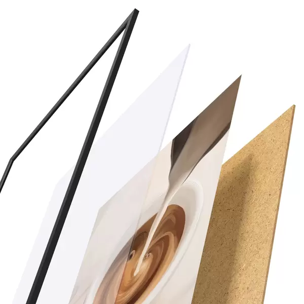 Plakāts sastāv no rāmja, pleksstikla, iespiestā attēla un skaidu plātnes pamatnes. Plakātu var uzreiz piekarināt pie sienas, pateicoties aizmugurē esošajiem stiprinājumiem.