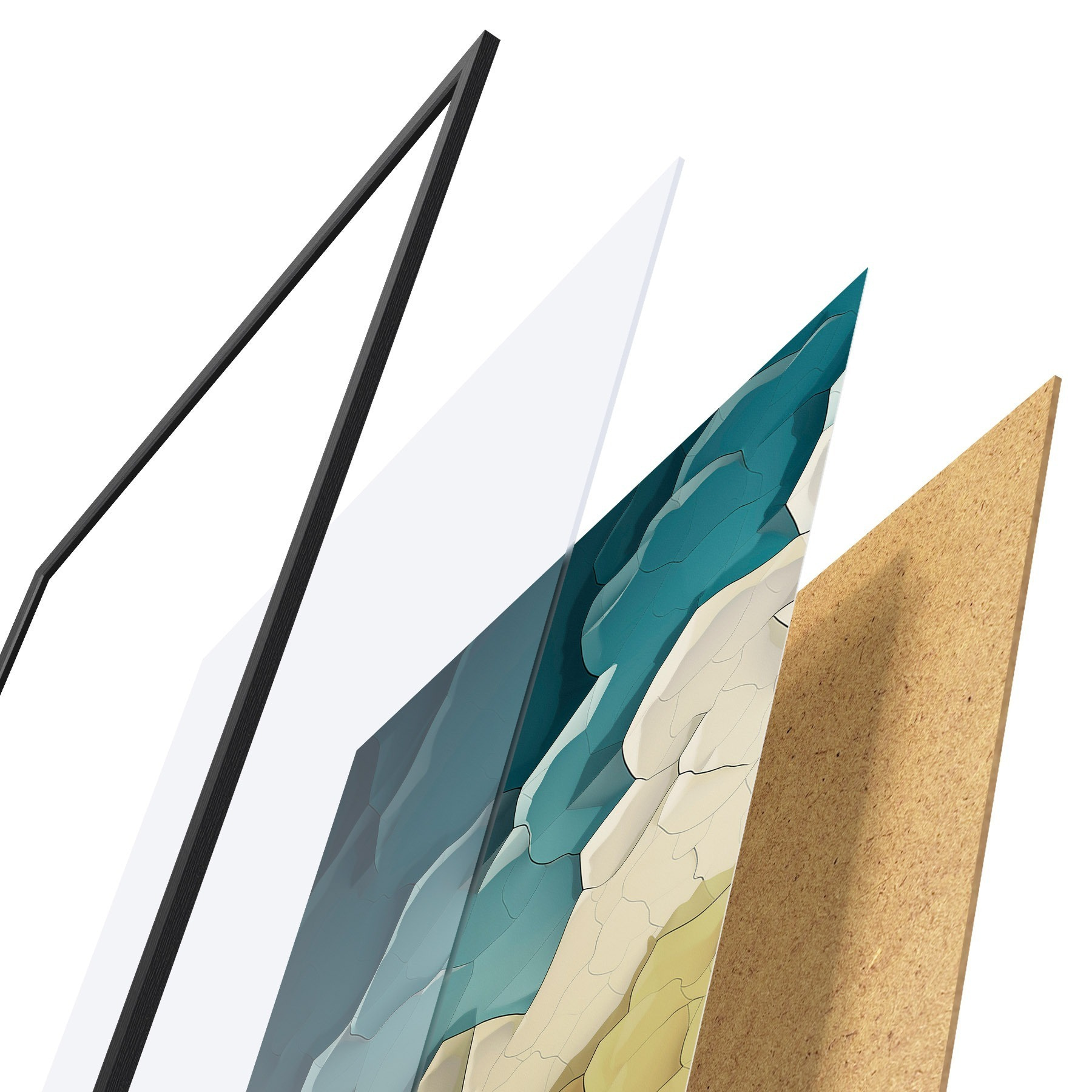 Plakāts sastāv no rāmja, pleksstikla, iespiestā attēla un skaidu plātnes pamatnes. Plakātu var uzreiz piekarināt pie sienas, pateicoties aizmugurē esošajiem stiprinājumiem.