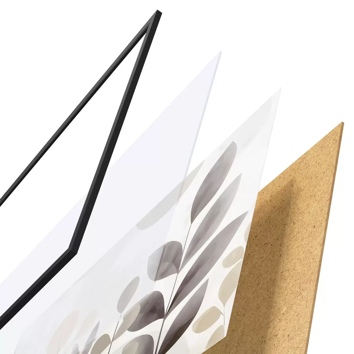 Plakāts sastāv no rāmja, pleksstikla, iespiestā attēla un skaidu plātnes pamatnes. Plakātu var uzreiz piekarināt pie sienas, pateicoties aizmugurē esošajiem stiprinājumiem.
